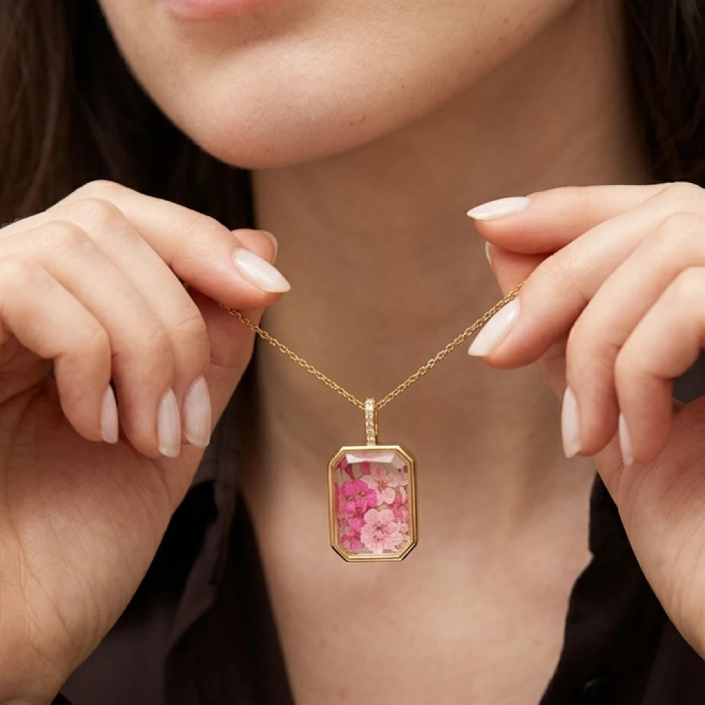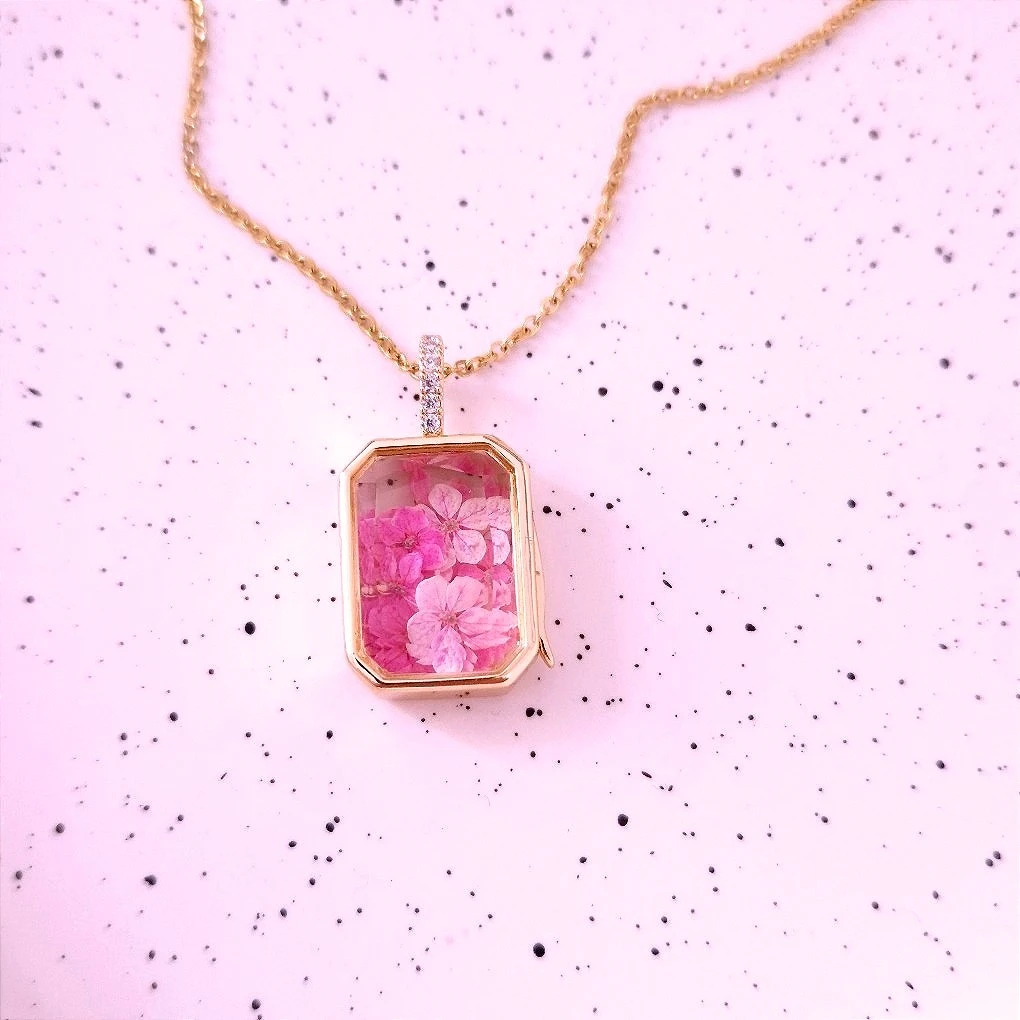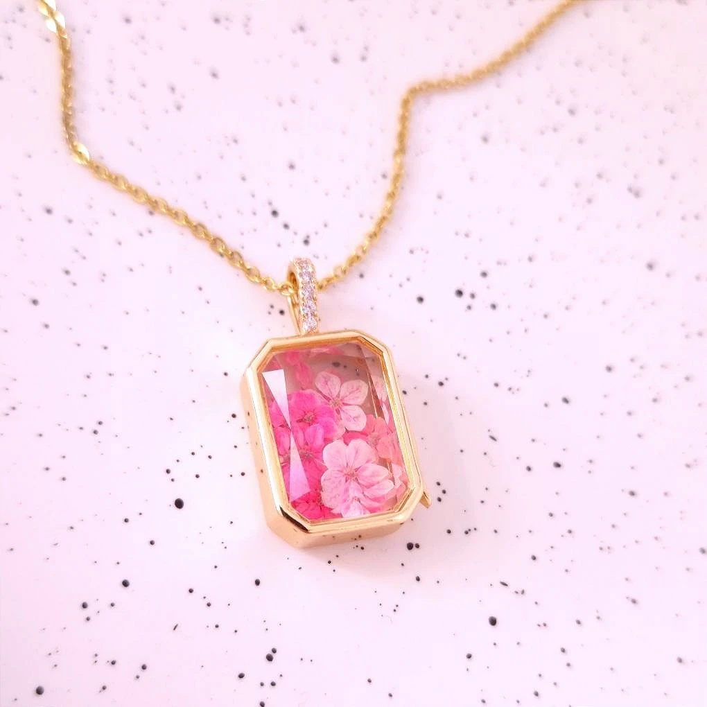 ✨Wypełnienie -Prawdziwe, Suszone Kwiaty: Wewnątrz otwieranego medalionu ze szklanym frontem, znajdują się starannie wyselekcjonowane i naturalnie suszone pąki i płatki kwiatów. Ich organiczne piękno i delikatna tekstura są doskonale widoczne. Każdy sekretnik to niepowtarzalny kawałek natury. Ponieważ używamy żywych roślin, każdy naszyjnik jest jedyny w swoim rodzaju.